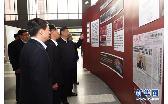 5月3日,中共中央總書記、國家主席、中央軍委主席習近平來到中國政法大學考察。這是習近平參觀校史及成果展。 新華社記者 李學仁 攝