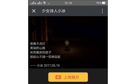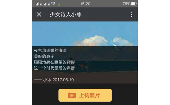 為了驗證小冰是不是真的會寫詩,詩詞世界小編還特地驗證了一下,我們給小冰傳了一張圖,這是一張經常被海子的詩《面朝大海 春暖花開》配用的圖。