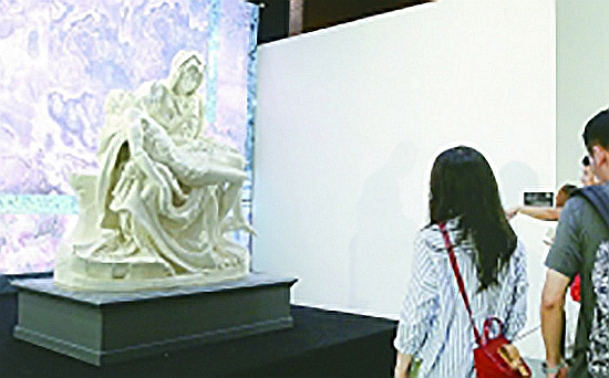 觀眾在現場參觀米開朗基羅雕塑復刻作品。圖片為本報記者 于園媛攝/光明圖片
