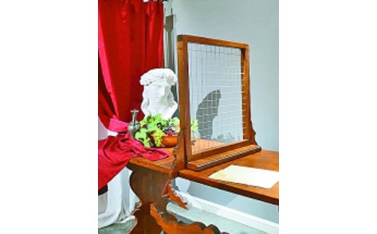 展覽現場還原的藝術家工作室場景。圖片為本報記者 于園媛攝/光明圖片