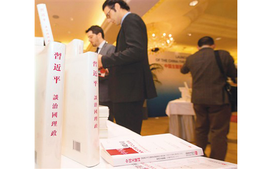 2017年1月,來賓在瑞士日內瓦舉行的中國主題圖書全球新年展銷月啟動儀式上瀏覽《習近平談治國理政》。