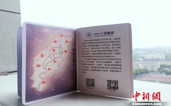 圖為圖書館閱讀護照。西南大學圖