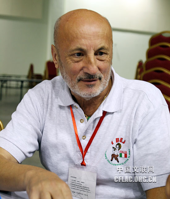 參加這次藝術節是我們第一次來到中國,感到非常高興。我們來自意大利傳統農業地區,主要從事養蠶紡織,我們那個地方在今天也是意大利非常著名的絲綢産地。當我們得知中國民間藝術節將在蘇州舉辦,蘇州同樣是個絲綢之鄉時,感覺是絲綢這一紐帶將我們係在了一起。因此,我們來參加這次藝術節,不僅因為演出,而是因為有著共同的傳統。我們的市長對此非常重視,專門托我們給蘇州方面帶來一封信,希望能夠做進一步交流。我們團也被稱為文化大使,在演出的同時還肩負著建立廣泛聯係的任務。