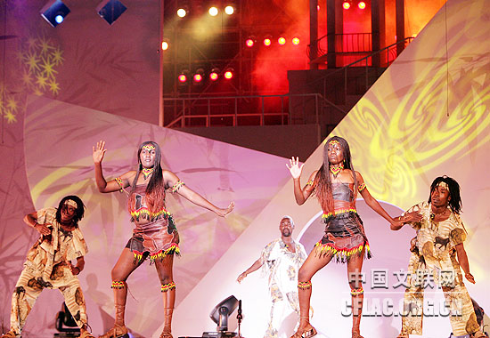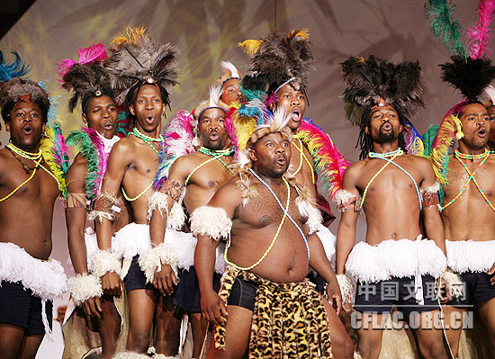 南非“傳統歌者”民間歌舞團演出舞蹈《蘆葦節舞》和《土風舞》
