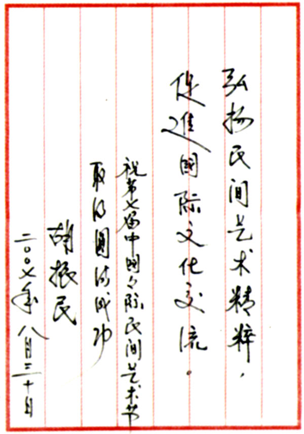 中國文聯黨組書記、副主席胡振民題詞
