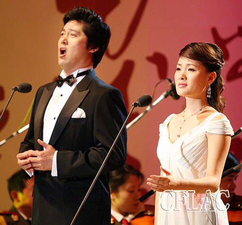 于爽(左)和雷佳表演二重唱《三位老人》