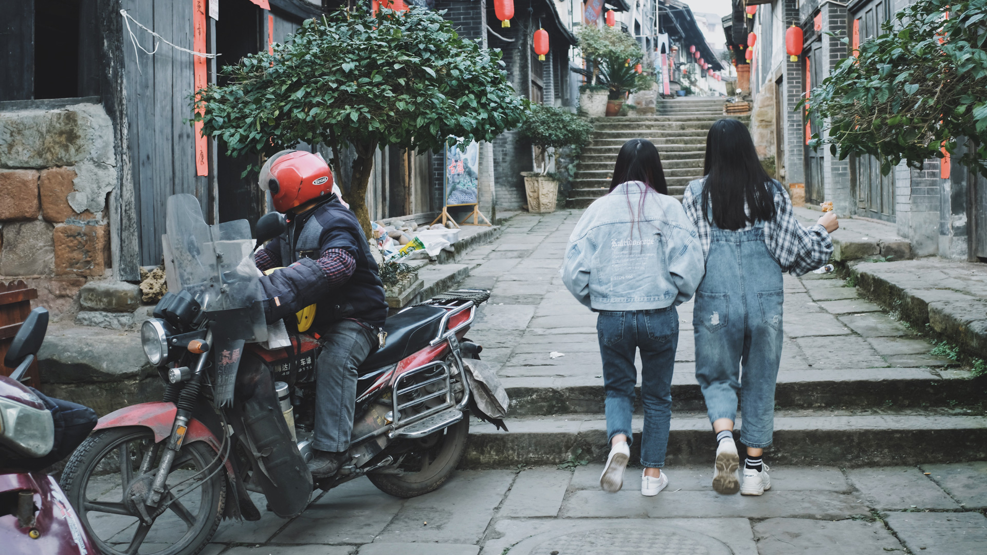 大門上的漆色已經斑駁了,門口石階上覆滿青苔顯得更加深沉,歷史的沉淀讓古鎮更加厚重,幾位老大爺閒散落坐,長話家常,悠閒生活不過如此。新華網發(傅傑 攝)