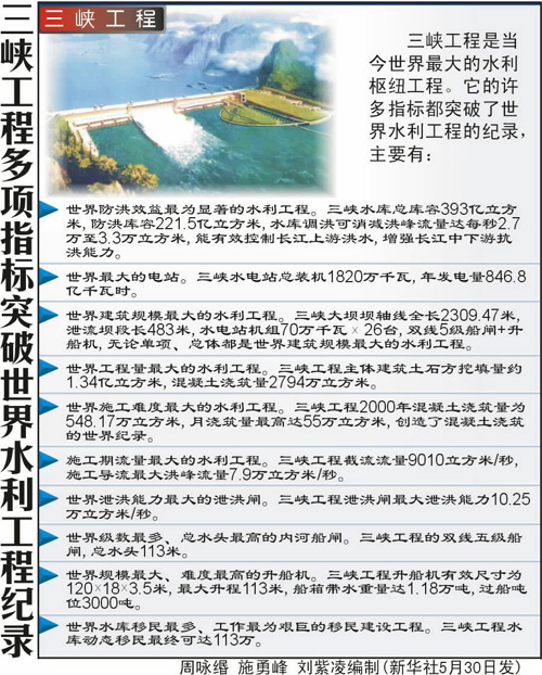 三峽工程多項指標突破世界水利工程紀錄