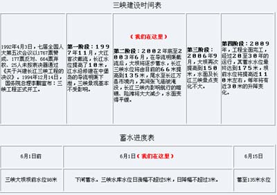 三峽建設時間表及蓄水進度表
