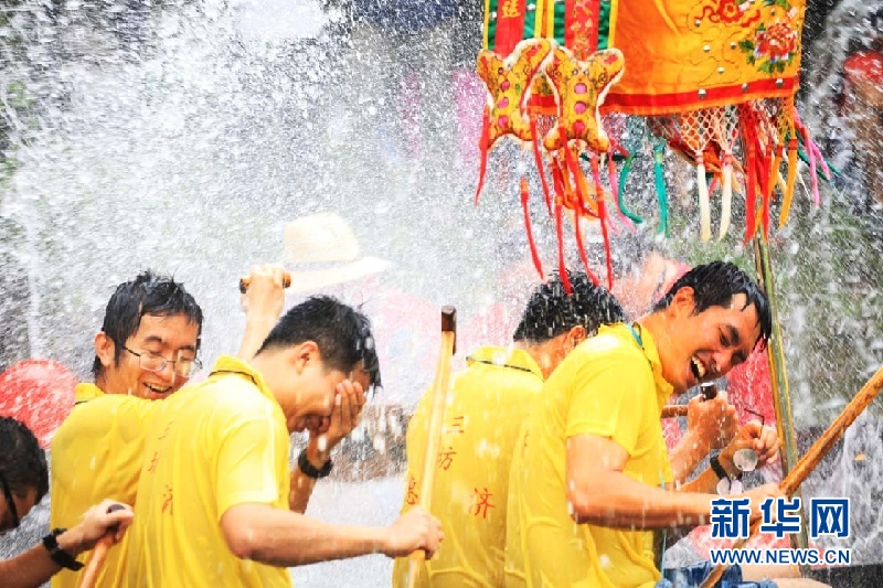 龍潭村的龍文化歷史悠久,為更好的傳承與發揚龍文化的精髓,龍潭村自去年起舉行“龍母誕”龍文化水鄉節,今年在保留原有的水鄉風貌和民俗特色的基礎上,在活動形式、活動內容上不斷推陳出新,龍母廟放生素食文化活、公益徒步活動、三人龍舟邀請賽、“龍母誕”民俗文化活動等一係列活動連番上演。新華網發(蒙小春 攝)