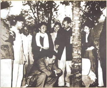 1957年4月,周恩來同志視察我場橡膠生産,並在紅心隊觀摩膠工的割膠表演。