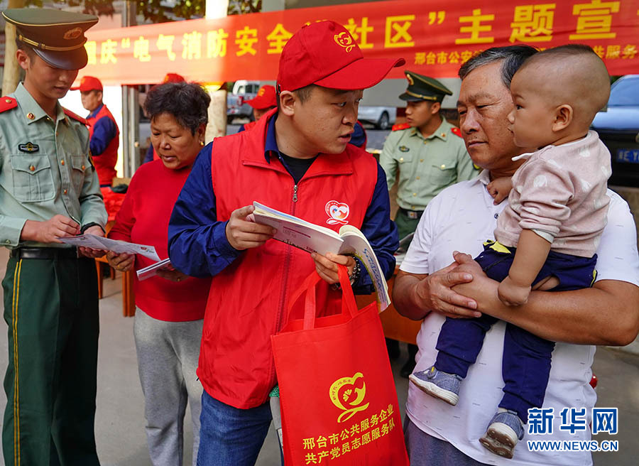 9月28日,為進一步加強群眾消防、用電安全意識,提升防火和滅火救援能力,有效預防電氣、火災事故,由國網邢臺供電公司等單位組織的公共服務企業共産黨員志願服務隊聯合邢臺消防支隊在燕雲臺社區開展了“迎國慶 電氣消防安全進社區”主題宣傳活動。記者 楊世堯攝