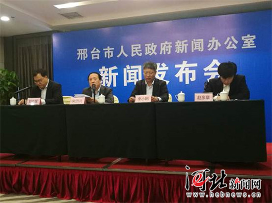 4月27日,邢臺市政府新聞辦舉行發布會,邢臺市交通運輸局黨委委員、新聞發言人宋田興介紹邢臺綜合客運樞紐建設項目進展情況。 記者 邢雲攝