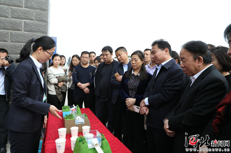 邢臺市各界代表走進南水北調中線幹線工程主題開放日活動現場,圖為觀看渠道模型演示。郭明明攝