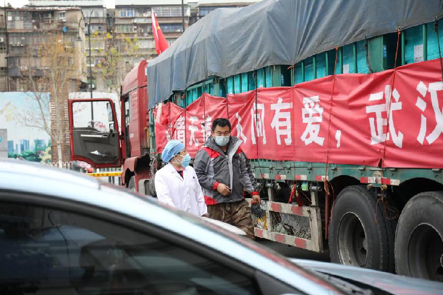 為武漢運送了數百噸蔬菜及醫藥用品等抗疫物資