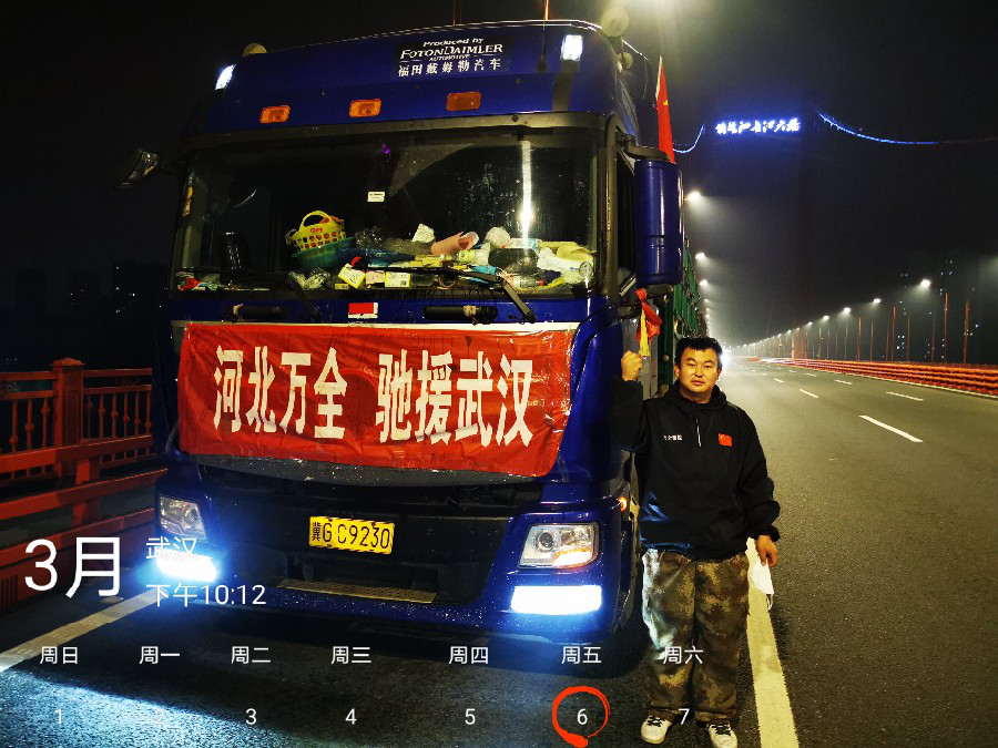 第一次去武漢,不知道會遭遇什麼意想不到的情況。他説:“自從裝上土豆之後,一路從張家口奔向武漢,沿途也看到不少志同道合的運輸人一起馳援武漢,路上遇到的陌生市民都給我們鼓掌,為我們豎大拇指點讚,交警也給我們貨車司機敬禮,熱情為我們指路引導等提供相關服務。這一切,讓我們受到了很高的禮遇,也打消了我們心中的不安和擔心,讓我們充滿了自豪和驕傲,也充滿了信心和力量。”