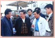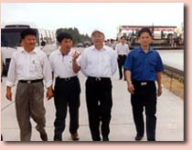 公司總經理張忠財陪同省委書記白克明 以及省交通廳廳長李執勇視察海文高速 公路施工現場
