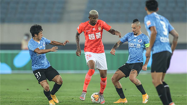 9月27日,在2020賽季中國足球協會超級聯賽第一階段(大連賽區)第14輪比賽中,廣州恒大淘寶隊戰勝大連人隊。2020-09-28 09:50:21 星期一 -