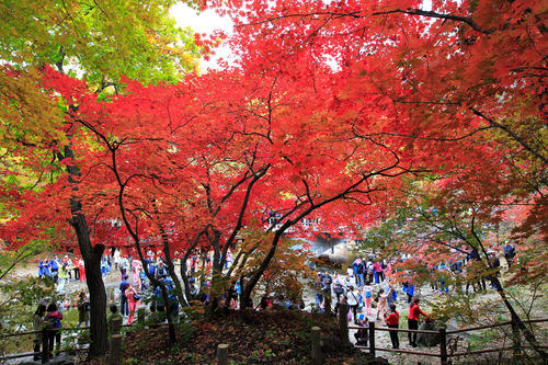 今年因農歷閏四月,關門山的楓葉紅的比往年晚了一些。2020-10-05 09:04:17 星期一 -