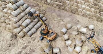 工程車在矮圍上挖沙(5月10日攝)。新華社發(張笑宇 攝)