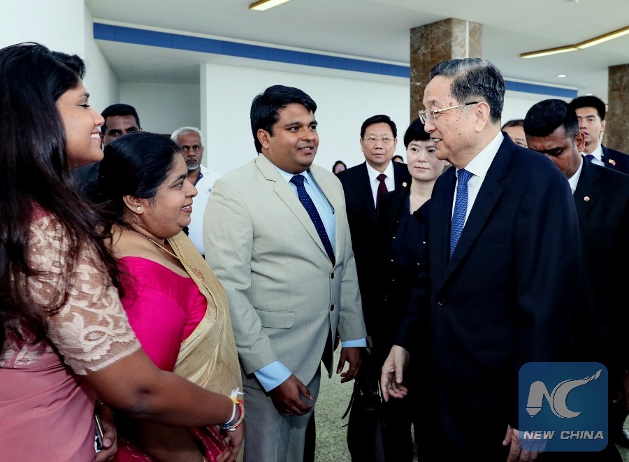 Yu, chairman of the National Committee of the Chinese People's Political Consultative Conference (CPPCC), visited the island country from Thursday to Saturday at the invitation of Sri Lankan Parliament Speaker Karu Jayasuriya.