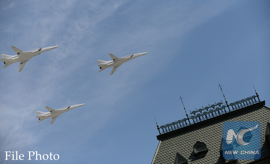 Tupolev Tu-22M3 strategic and maritime strike bomber fleet fly over the Red Square during the military parade marking the 70th anniversary of the victory in the Great Patriotic War, in Moscow, Russia, May 9, 2015. (Xinhua/Jia Yuchen)