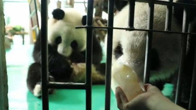 大熊貓“姐妹花”安然度暑