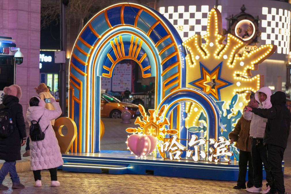 12月以來,哈爾濱進入冬季旅游旺季,中央大街上游人如織。作為哈爾濱市閃耀的城市名片,中央大街在豐富多彩的創意景觀與燈飾裝飾下顯得格外動人。夜幕降臨,華燈初上,游人徜徉其中,盡享當地獨特文化魅力。