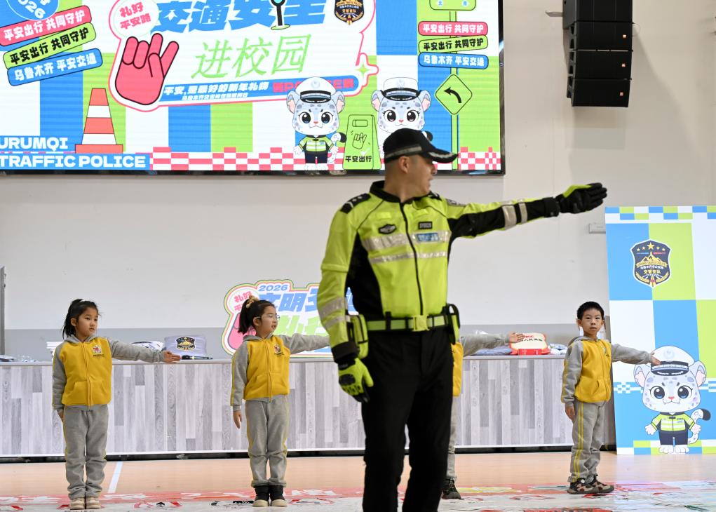 寒假將至,烏魯木齊市公安局交通管理支隊走進校園,開展“交通安全最後一課”主題宣傳活動,通過游戲互動方式,寓教於樂,提高師生們交通安全意識。