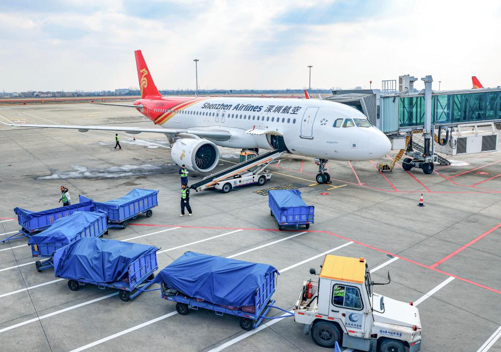 春運臨近,揚州泰州國際機場旅客往來穿梭,一派繁忙景象。