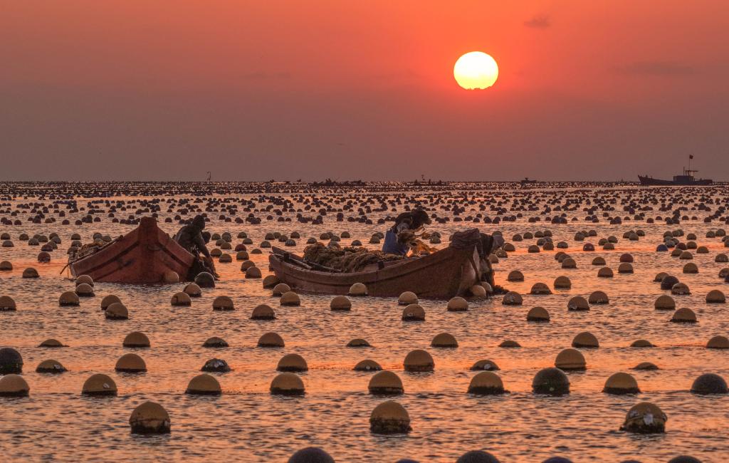 眼下,山東省榮成市小海帶迎來收穫季,養殖工人忙碌收穫,投放春節市場。