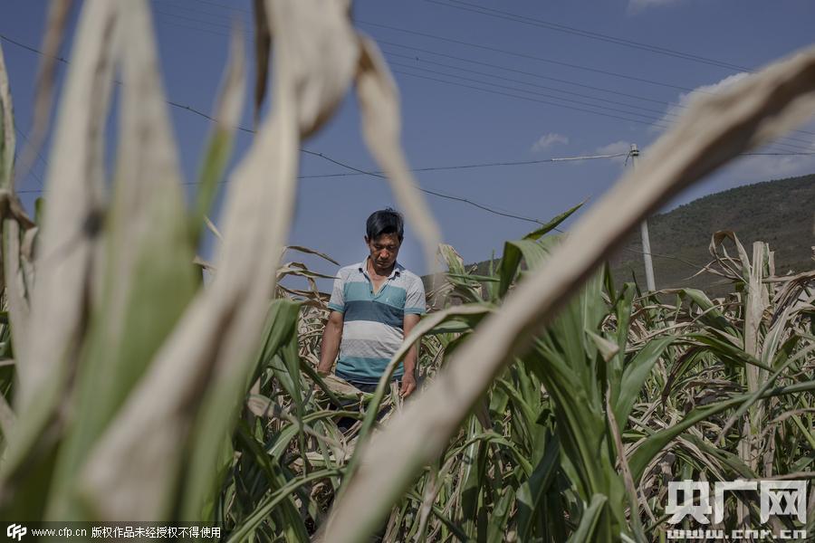 在鶴慶縣黃坪鎮山西村,早種的玉米,在幹旱下死亡。水綠褪去,世界的色調下調,變灰。一夥窮苦的玉米,隨風,搖擺慘淡的命運。