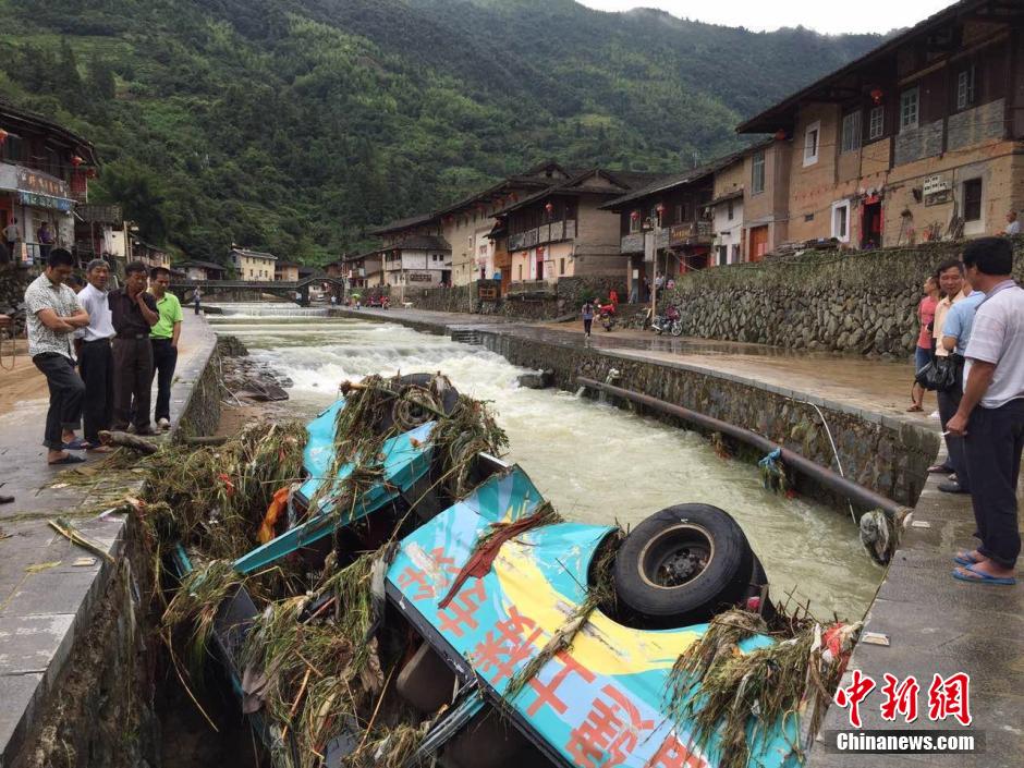 福建南靖一土樓景區遇山洪 小客車被衝走
