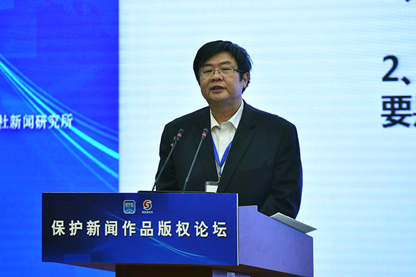 2015年12月3日,第八屆中國版權年會保護新聞作品版權論壇在北京新華社新聞大廈舉行。圖為中國人民大學新聞學院教授宋建武發表專題演講。新華網 郭小天 攝