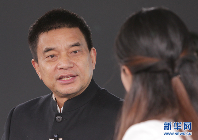 2015年3月8日,全國人大代表、新希望集團董事長劉永好作客新華訪談2015年全國兩會特別節目。談新常態下企業發展的新思路。圖為劉永好解答主持人問題。 新華網 郭研 攝