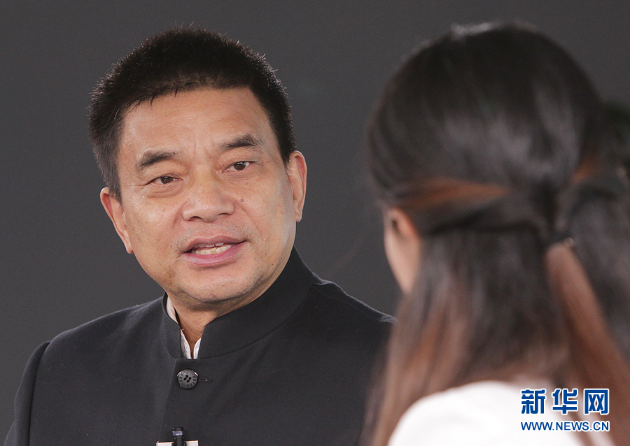 2015年3月8日,全國人大代表、新希望集團董事長劉永好作客新華訪談2015年全國兩會特別節目。談新常態下企業發展的新思路。圖為劉永好解答主持人問題。 新華網 郭 研 攝