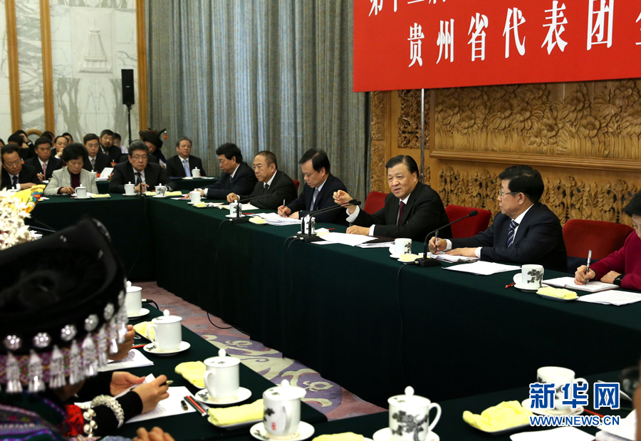 3月8日,中共中央政治局常委、中央書記處書記劉雲山參加十二屆全國人大三次會議貴州代表團的審議。 新華社記者馬佔成攝