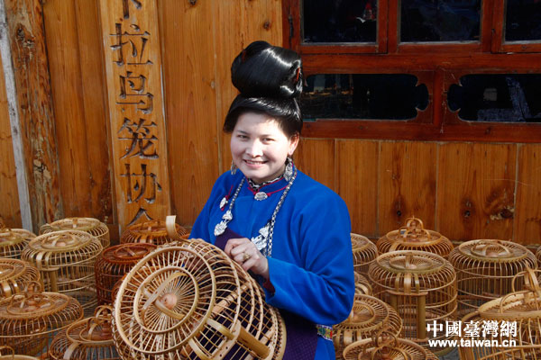卡拉村“鳥籠西施”湯曉春。(中國臺灣網 梁行 攝)
