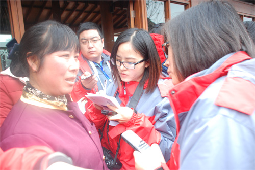 盧米淑接受記者們採訪。人民網記者 楊翼 攝