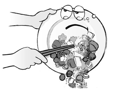 記者在食堂裏轉了一圈,發現留在桌上的餐盤一半以上都剩了飯菜,真正做到“光盤”的人並不多。“吃飯的人,大都會剩下一些。”負責打掃餐桌、清理餐盤的清潔人員説,“但只有極個別會剩得比較多。”