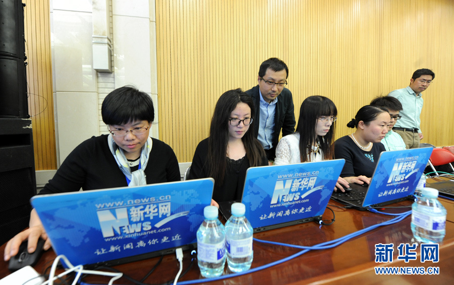 4月7日,新華社國家高端智庫論壇在總社大廈多功能廳舉行。圖為新華網進行現場報道。新華網 陳競超攝