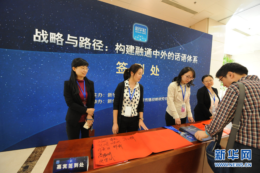 4月7日,新華社國家高端智庫論壇在總社大廈多功能廳舉行。圖為嘉賓簽到。新華網 陳競超攝
