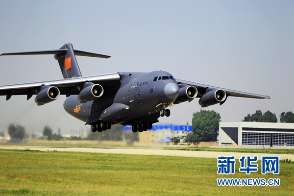 首架轉場交付的運-20運輸機騰空而起(2016年6月攝)。 7月6日,我國自主研發的首款大型運輸機——運-20飛機授裝接裝儀式在空軍航空兵某部舉行。 新華社發