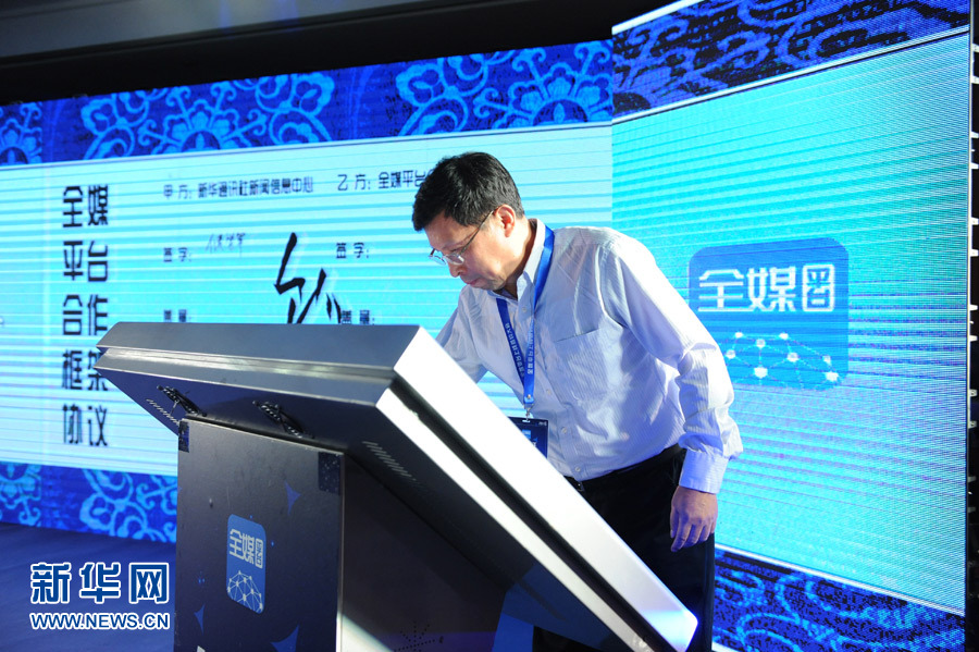 全媒平臺首批成員與新華社新聞信息中心簽訂全媒平臺合作協議。 新華網 陳競超攝
