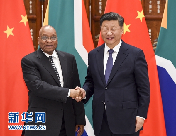 祖馬表示,南中友誼源遠流長,南非珍視南中全面戰略夥伴關係。兩國關係正不斷深化,各領域合作迅速發展。南方讚賞中方為非洲發展所做的貢獻,讚賞中方引領二十國集團領導人杭州峰會聚焦聯動發展、聯合國2030年可持續發展議程等發展議題,並特別關注非洲發展,願密切同中方在聯合國、二十國集團、金磚國家、中非合作論壇等多邊框架內合作。