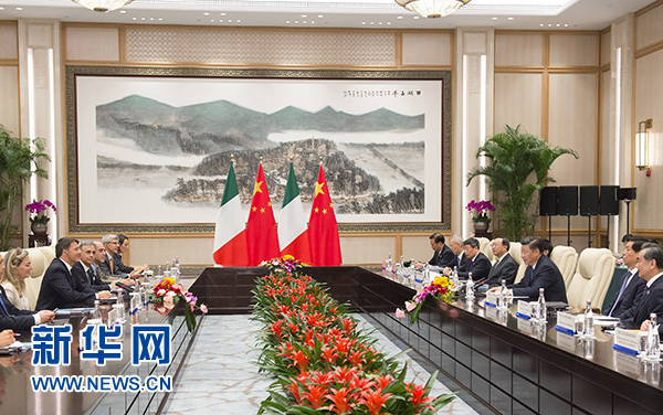 習近平歡迎倫齊來華出席二十國集團領導人杭州峰會。習近平指出,近年來,中意關係取得長足進步,雙方秉承相互尊重、互利共贏精神,深化政治互信,擴大務實合作,使兩國人民獲得實實在在的利益。中方願同意方攜手努力,不斷推進兩國全面戰略夥伴關係向前發展。我們要堅持兩國戰略互信大方向,尊重彼此核心利益和重大關切,密切兩國政府、議會、政黨交流合作。要堅持互利共贏原則,優勢互補,實現共同發展。中方歡迎意方積極參與“一帶一路”建設。我們要以古老文明為依托,密切人文交流,深化傳統友誼。要加強在國際和地區事務中的協調和配合,努力構建以合作共贏為核心的新型國際關係。要將中歐和平、增長、改革、文明四大夥伴關係落到實處,共同維護中歐關係良好發展勢頭。
