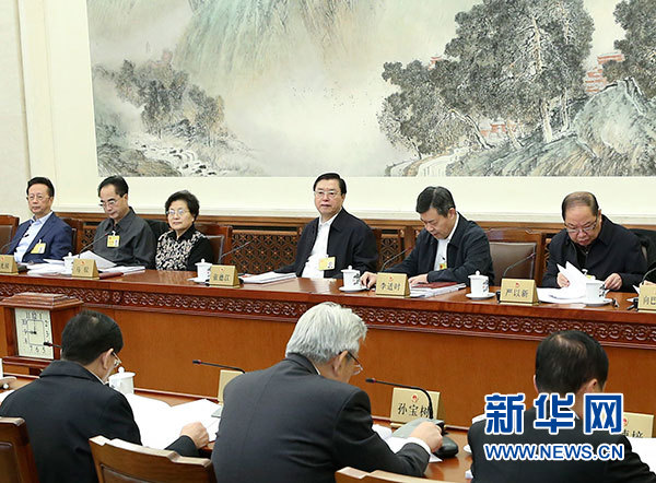 11月1日,十二屆全國人大常委會第二十四次會議舉行分組會議,審議關于修改民辦教育促進法的決定草案、關于修改海洋環境保護法的決定草案、對外貿易法等12部法律的修正案草案。張德江委員長參加審議。新華社記者 龐興雷 攝