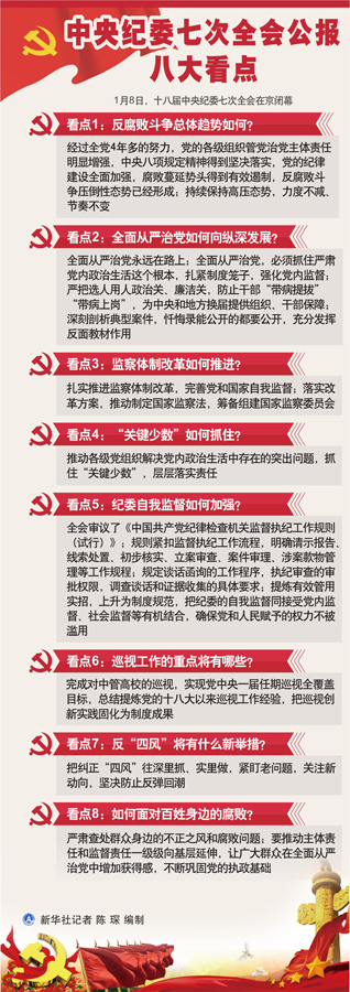 新華社北京1月8日電題:壓倒性態勢已經形成,2017年反腐將有哪些新信號?--中央紀委七次全會公報八大看點