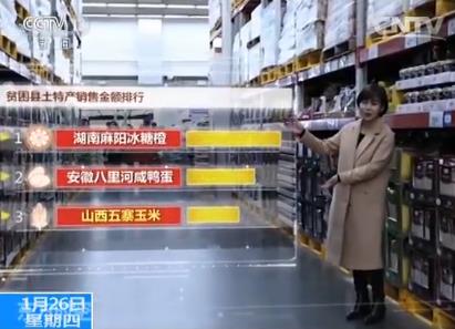 乘著電商的年貨熱潮,不少國家級、省級貧困縣的土特産供不應求。其中來自湖南麻陽的冰糖橙、安徽八裏河的鹹鴨蛋和來自山西的五寨玉米,奪得銷售金額的前三甲。