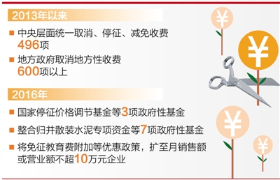 原標題:2013年以來,中央層面統一取消、停徵、減免收費496項